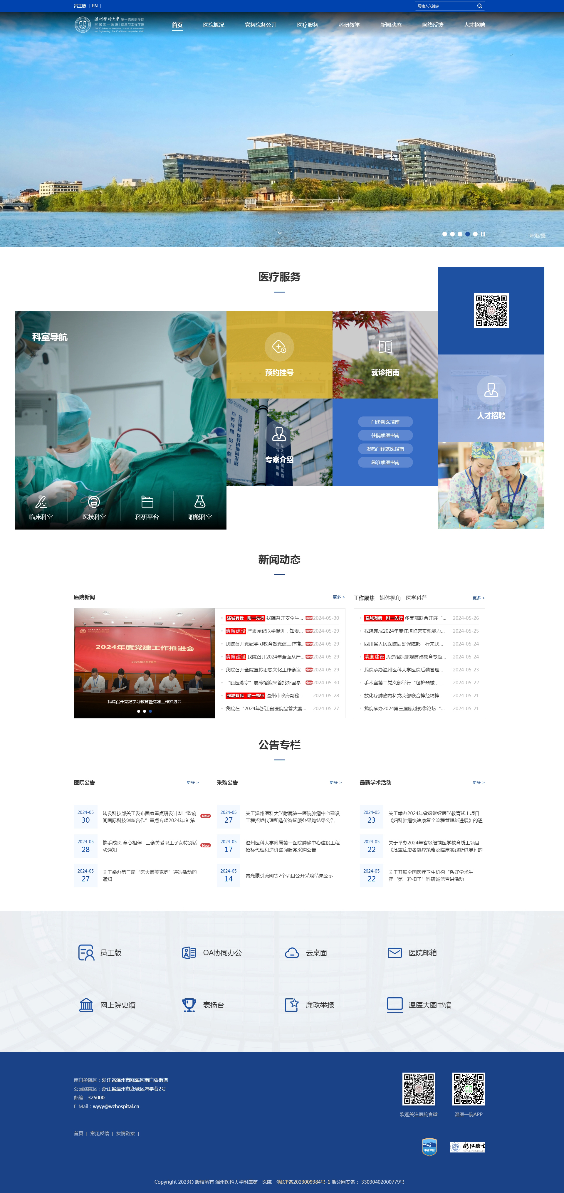 溫州醫(yī)科大學(xué)附屬第一醫(yī)院創(chuàng)建于1919年,是浙江省首批通過三甲評審的四家綜合性醫(yī)院之一,醫(yī)療服務(wù)輻射浙南閩北贛東近3000萬人口。醫(yī)院位列中國醫(yī)院科技影響力排行榜(綜合)第59位,25個學(xué)科入圍全國學(xué)科科技影響力百強。2021年獲批浙江省級區(qū)域醫(yī)療中心依托醫(yī)院。醫(yī)院現(xiàn)有在崗職工6593人,其中高級職稱908人、碩士生導(dǎo)師404人、博士生導(dǎo)師68人。擁有百千萬人才工程國家級人選、國家有突出貢獻(xiàn)中青年專家等各類人才近500人次。醫(yī)院南白象和公園路兩個院區(qū)占地總面積530余畝,建筑面積43萬平方米,核定床位33
