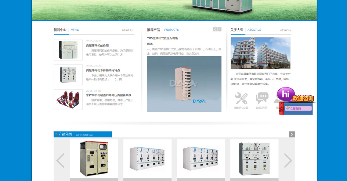 大亞電器集團有限公司(前身浙江大亞電 器設(shè)備廠)創(chuàng)辦于一九八八年,八九年和上海電器 科學研究所技術(shù)合作。九零年榮獲原機械工業(yè)部、 電力工業(yè)部生產(chǎn)高低壓開關(guān)成套設(shè)備定點企業(yè)、國 家經(jīng)貿(mào)委兩網(wǎng)改造推薦產(chǎn)品企業(yè)。2016年與西班牙西蒙電力科技有限公司中外合資組成更強大的集團公司。