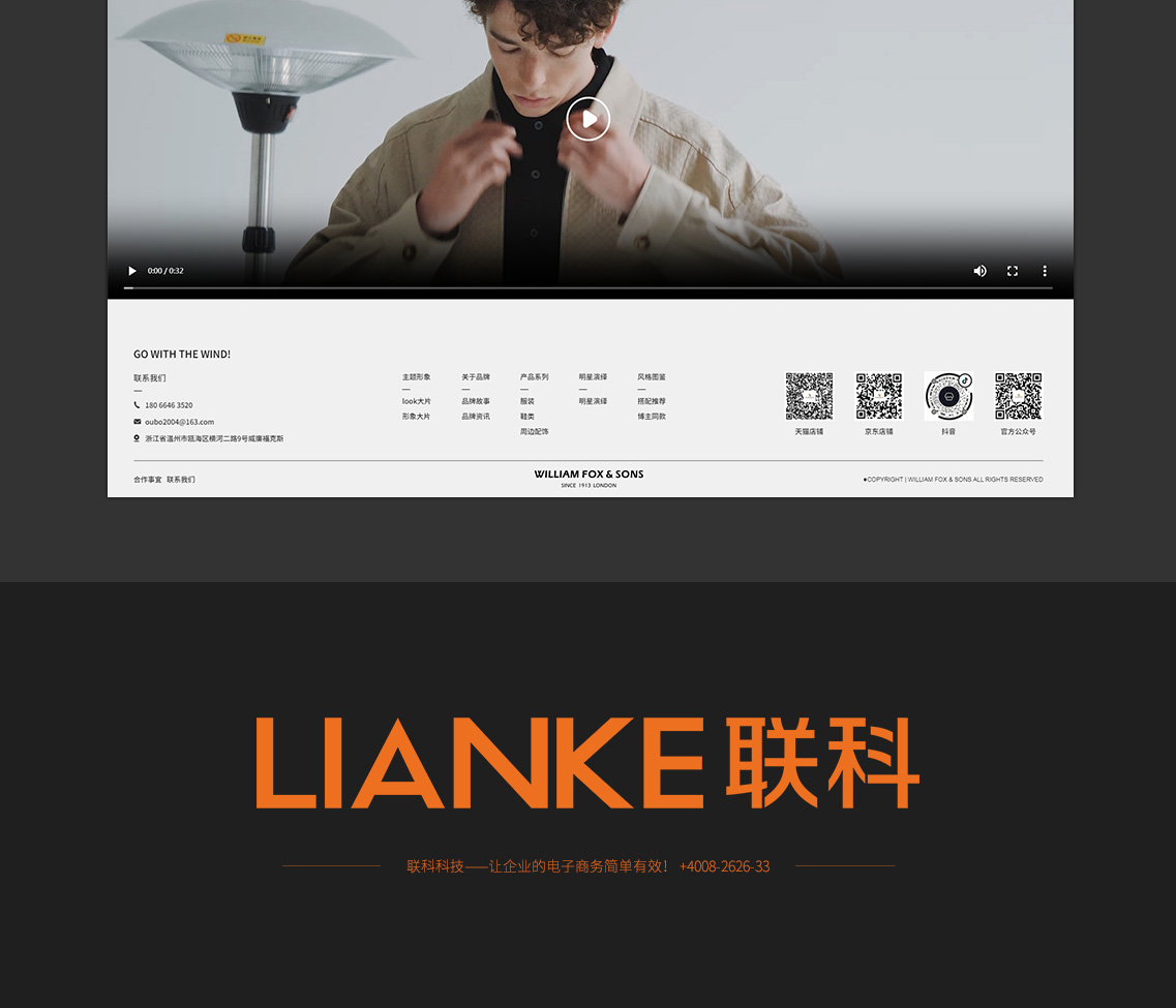 WILLIAM FOX & SONS品牌始創(chuàng)于1913年的英國倫敦。1895年,英裔美國人威廉??怂瓜壬?,在美國緬因州霍爾頓的卡爾??怂勾蠼稚祥_設(shè)了名為WILLIAM FOX &SONS的服飾店,專營男士定制服飾與運動用品。小狐貍是WILLIAMFOX & SONS的品牌標(biāo)識,象征著機智、敏捷。
