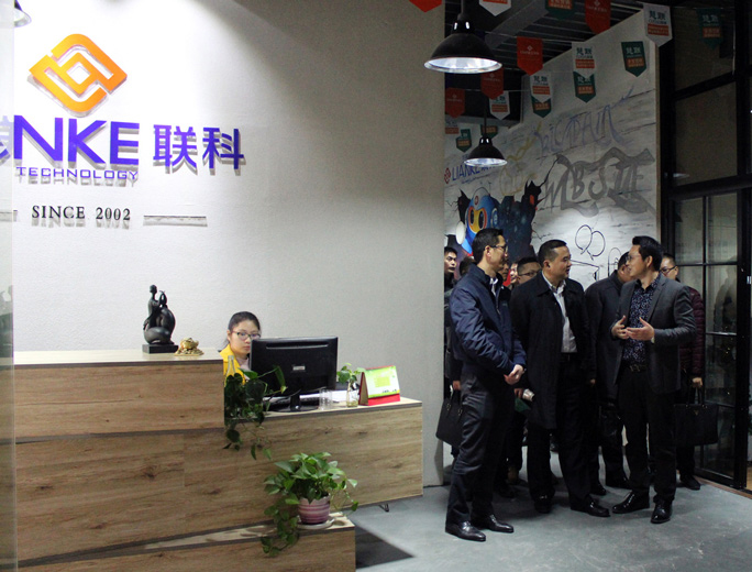 2015年12月30日下午,溫州市商務(wù)局(網(wǎng)絡(luò)經(jīng)濟(jì)局)局長(zhǎng)陳向東局長(zhǎng)及同行區(qū)委領(lǐng)導(dǎo)蒞臨我公司——溫州市聯(lián)科科技有限公司參觀交流。公司董事長(zhǎng)鄭祥富向來賓簡(jiǎn)要介紹了公司的發(fā)展歷程、研發(fā)規(guī)模和人員配置等概況。