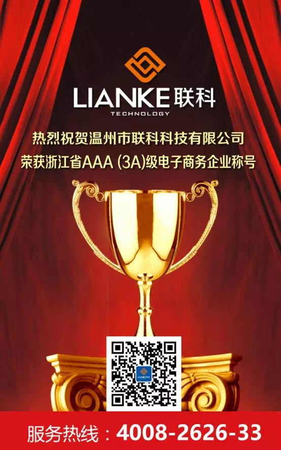 熱烈祝賀溫州市聯(lián)科科技有限公司榮獲浙江省AAA (3A)級(jí)電子商務(wù)企業(yè)稱號(hào)