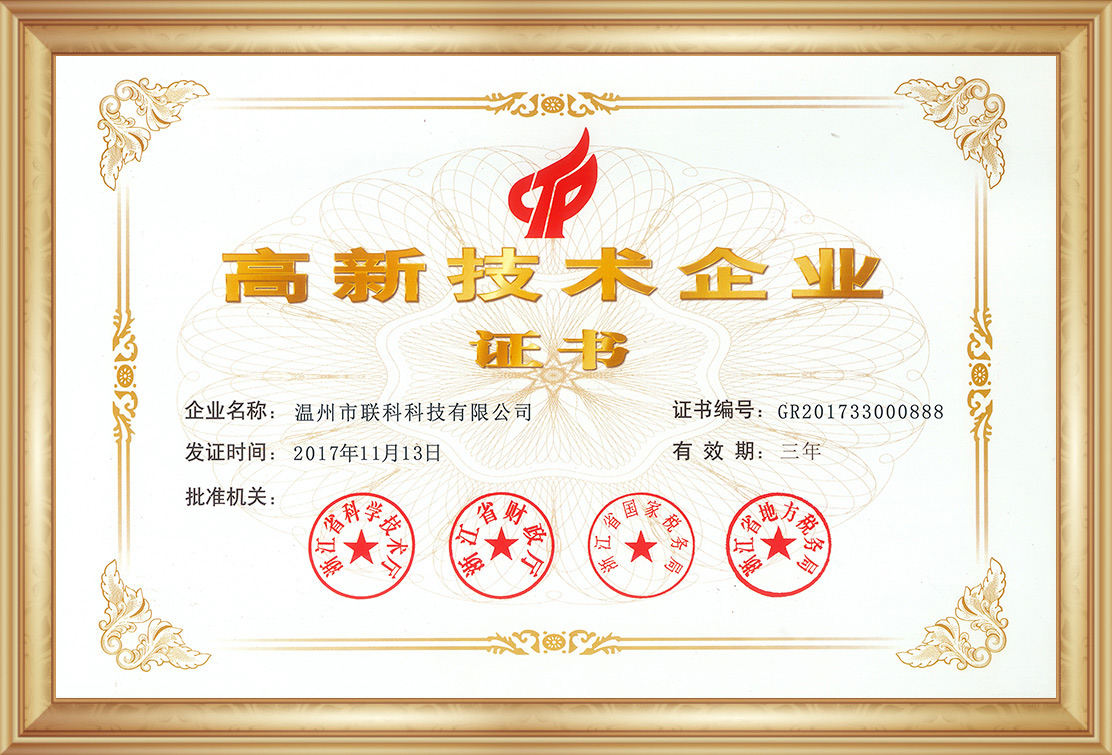 熱烈祝賀溫州市聯(lián)科科技有限公司被認定為國家高新技術企業(yè)