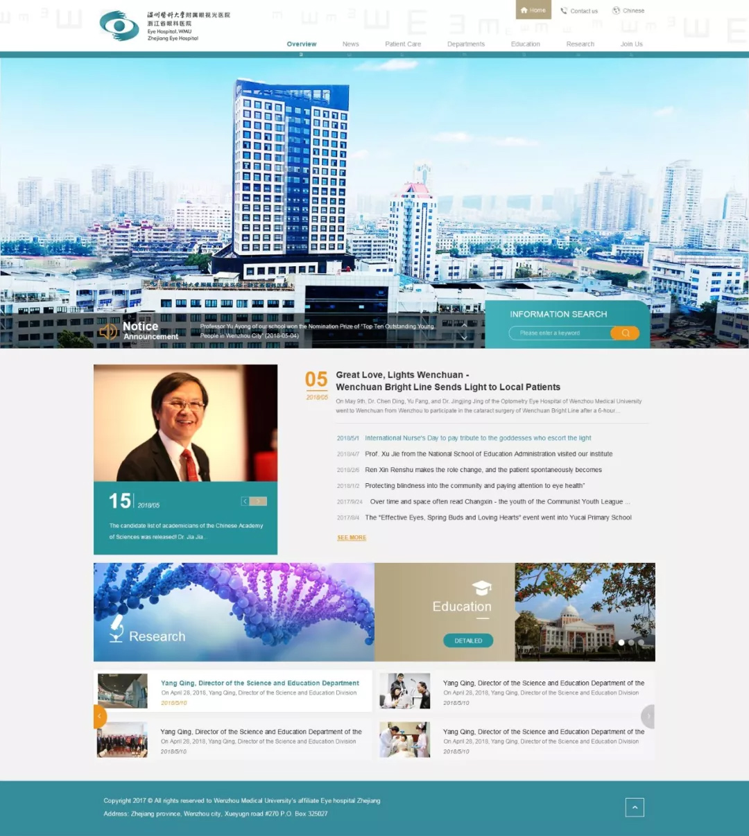 溫州醫(yī)科大學附屬眼視光醫(yī)院成立于1998年,2009年經省衛(wèi)生廳批準增掛"浙江省眼科醫(yī)院",設有溫州總院、杭州院區(qū)、之江院區(qū)、上海院區(qū)四個院區(qū),是目前浙江省唯一一家三級甲等眼科??漆t(yī)院。經過近二十年的發(fā)展,醫(yī)院形成了集醫(yī)療、教學、科研、產業(yè)、公益、推廣為一體的眼視光體系。