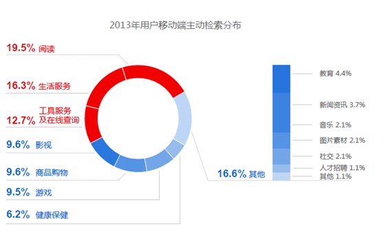 在百度站長平臺(tái)發(fā)布的《2014年中國網(wǎng)站運(yùn)營發(fā)展趨勢報(bào)告》中我們得到這樣一組數(shù)據(jù),用戶主動(dòng)檢索的分布主要是集中在生活服務(wù)、商品購物、健康保健、影視視頻相關(guān)、教育相關(guān)、音樂相關(guān)、小說、基于地理位置的信息服務(wù)(LBS)、游戲這幾個(gè)方面,可以看出用戶在這些方面的需求非常旺盛的。